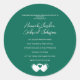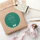Passen Sie diese klassischen Rundaufkleber mit Ihrem gewünschten Namen, Datum oder Nachricht an. Ideal für Hochzeiten und andere Anlässe. Farbe angezeigt ist smaragdgrün. Verwenden Sie die Vorlage, um Ihre eigenen Hochzeitsaufkleber zu erstellen.