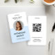 Modern round circular personalized employee photo ID name badge with a custom QR code. Simple, sleek light blue Identification name and title photograph badges.
