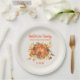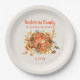 Orangefarbene Kürbisse und Herbstlaube Erntedank Dinner Papier Teller personalisiert mit Ihrem eigenen Text. Fügen Sie Ihren Familiennamen und das Datum oder alles andere, was Sie möchten, hinzu.