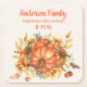 Orangefarbene Kürbisse und Herbstlaube Erntedank Dinner Untersetzer personalisiert mit Ihrem eigenen Text. Fügen Sie Ihren Familiennamen und das Datum oder alles andere, was Sie möchten, hinzu.