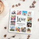 Erstellen Sie Ihre eigene personalisierte 12-Foto-Collage, Untersetzer mit Ihren individuellen Bildern auf einem einfachen, modernen, weißen Hintergrund. Das Untersetzer-Gesicht enthält auch Ihren Familiennamen, das etablierte Jahr und eine handgeschriebene "Liebe"-Schrift. Fügen Sie Ihre Lieblings-Fotos, Designs oder Kunstwerke, um etwas wirklich Einzigartiges zu schaffen.