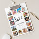 Erstellen Sie Ihre eigene personalisierte 14-Foto-Collage, die Zwischenablage mit Ihren individuellen Bildern auf einem einfachen, modernen, weißen Hintergrund. Die Clipboard-Seite enthält auch Ihren Familiennamen, das etablierte Jahr und eine handgeschriebene "Liebe"-Schrift. Fügen Sie Ihre Lieblings-Fotos, Designs oder Kunstwerke, um etwas wirklich Einzigartiges zu schaffen.