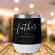 Custom Vater der Groom Script Kalligraphie Name Thermal Wine Tumbler. Einfache Anpassung eleganter Skripttypografie Monogramm. Ideal für Hochzeitsfeier oder Brautparty Geschenkidee!