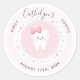 Personalisierte Dekoration aus dem First Tooth Party. Pfirsichrosa Aufkleber mit niedlichem Säuglingzahn, bearbeitbarer Name und Meilensteindatum. Besuchen Sie den Shop, um alle Kollektionen von First Tooth zu sehen.