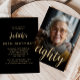 An der Vorderseite dieses 80. Geburtstags lädt der Gast des Fotos der Ehre mit einem goldfarbenen Textüberlagerungsstück ein. Das Wort "achtzig" erscheint in elegantem goldfarbenem Kalligrafieschrift. Ein dunkler Bildschirm hilft, den Text-Pop zu machen. Passen Sie die Rückseite mit Namen und Party-Details auf einem schwarzen Hintergrund an. Eine tolle Art, jemanden zu feiern, der achtzig wird!