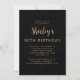 An der Vorderseite dieses 90. Geburtstags lädt der Gast des Fotos der Ehre mit einem goldfarbenen Textüberlagerungsstück ein. Das Wort "neunzig" erscheint in elegantem goldfarbenem Kalligrafieschrift. Ein dunkler Bildschirm hilft, den Text-Pop zu machen. Passen Sie die Rückseite mit Namen und Party-Details auf einem schwarzen Hintergrund an. Eine tolle Art, jemanden zu feiern, der neunzig wird!