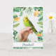 Wenn jemand einen Hausvogel aus einem Unterschlupf adoptiere, wird diese Karte ein Sake sein. Fügen Sie ein Foto des Vogels oder die Person mit Vogel hinzu und fügen Sie einen eigenen Text wie die Vogelart oder den Namen hinzu, wie Sie ihnen zu ihrer Vogelwelt-Adoption gratulieren. Blätter und Blume aus tropischem Regenwald fügen den grünen Rahmen hinzu. Das Innere ist immer bearbeitbar.