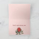 Niedliche Waldtiere mit farbenfroher Blumendekoration auf dem Kopf und ein Foto des Prominenten auf einem Kranz von Blätter. Der Hintergrund ist rosa mit Punkten. Im Inneren gibt es einen Geburtstagswunsch und eine Rose mit Blätter