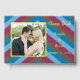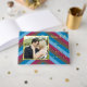 Gästebuch mit gefliestem gestreiftem Muster, das zu den beiden Flamingos bei Dämmerung auf der Rückseite des Buches passt. An der Vorderseite befindet sich ein Foto des glücklichen Paares, das durch ein richtiges Foto des Paares ersetzt werden kann. Personalisieren Sie diese Vorlage mit Textinformationen und Fotos.