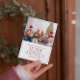 Minimalistisch Frohe Weihnachtskarte mit individuellem Foto und anpassbarem Text für den Familiennamen in dunkelrot.