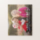 "Frieden, Liebe und Freude." Ein spielerisches visuelle weißer, skurriler, handgeschriebener Typografie und Konfetti aus Champagnergold gegen Ihr personalisiertes Foto, hilft Ihnen, Weihnachten und Neujahr einzuführen. Genießen Sie die Wärme und Freude der Ferienzeit, wenn Sie dieses stilvolle und moderne personalisierte, maßgeschneiderte Puzzle nutzen. Ersetzen Sie das Foto mit den einfach zu bedienenden Vorlagen durch eines Ihrer eigenen und geben Sie Ihren Namen, das Jahr und/oder den Gruß ein. Passende und koordinierende Karten, Umschläge, Geschenkpackungen, Kissen und andere Produkte sind auch in meiner "Christmas Peace, Liebe & Joy"-Shop-Kollektion erhältlich. Ein besonderes Geschenk für Liebende und Familienfreunde!