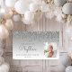 Begrüßen Sie den Aufenthalt mit diesem schicken, glamourösen Foto-Banner aus dem 80. Jahrhundert, das mit einem funkelnd silbernen Imitat Glitzer Tropfen-Rahmen und silberfarbenem Hintergrund besticht. Ersetzen Sie das Beispielbild einfach durch ein Foto des Ehrengast. Personalisieren Sie es mit ihrem Namen in Grauhandschrift, mit dem Geburtstag und das Datum unten in grauem Sans Serif Schriftart.