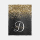 Custom Gold Glitzer Black Sparkgram Monogram Fleecedecke
