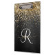 Custom Gold Glitzer Black Sparkgram Monogram Klemmbrett