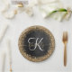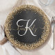 Custom Gold Glitzer Black Sparkgram Monogram Pappteller