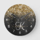 Custom Gold Glitzer Black Sparkgram Monogram Runde Wanduhr