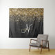 Custom Gold Glitzer Black Sparkgram Monogram Wandteppich