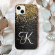 Custom Gold Glitzern Black Funkelnd Mit Monogramm iPhone 14 Plus Hülle