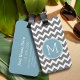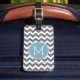 Custom Grau Pastel Blue Zickzack Pattern Monogram Gepäckanhänger