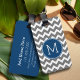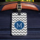 Custom Gray Navy Blue Zickzack Pattern Monogram Gepäckanhänger