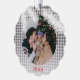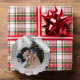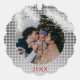 Entwerfen Sie eine zeitgenössische, klassische Weihnachtsgeschmackskarte mit einem grau-weiß karierten tartan Gingham Stil. Diese Karte bietet die Möglichkeit, den Text, den Familiennamen und das Datum des Jahres anzupassen, ein persönliches Foto auf der Vorderseite einzufügen und auf der Rückseite eine individuell anpassbare, saisonale Begrüßungsnachricht anzubringen.