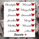Custom Guest List 12 Names Calligraphy Red Heart Aufkleber
