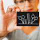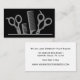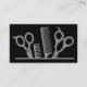 Scheren und Comb Black & White Minimalistisch Design. Mit dieser Visitenkarte mit dem eleganten schwarzen Hintergrund mit der ikonisch-weißen Schere, dem Kamm und den Styling-Werkzeugen vermitteln Sie einen feinen ersten Eindruck. Das minimalistische Frontdesign eignet sich perfekt, um Ihren Beruf zu präsentieren, während die Rückseite Platz für Ihren Salonnamen, Kontaktinformationen und die Website bietet. Ideal für Friseure, Friseure oder Schönheitsexperten, die eine moderne, berufliche und stilvolle Karte gewollt haben, um ihre Marke zu repräsentieren. Ideal für Networking-Events, Client-Referrals oder Termin-Erinnerungen.