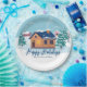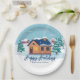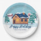 Diese schöne, nach Maß gefertigte Party-Platte für Anwesen ist perfekt für ein Immobilienunternehmen im Norden. Ein schönes Zuhause zeichnete eines schneegesäumten Hauses, das aus dem Kamin neben den grünen Bäumen kommt. Ein Immobilienmakler kann Happy Holidays in kursiver Schrift behalten oder mit seinen eigenen Frohen Festtagen zu Weihnachten anpassen.