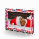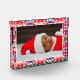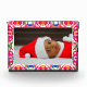 Custom Happy Red Bright Green Christmas Keepake Foto Block. Ein jolly geometrischer Musterrahmen umgibt das Foto eines Kindes in einer Weihnachtsmannmütze. Personalisieren Sie es, indem Sie Ihr eigenes Foto hochladen, um fröhliche Weihnachtsfeiern Erinnerungen. Freuen Sie sich auf warme Rottöne, helle Orange und hübsches Rosa. Kaufen Sie als fröhliches Geschenk für Großeltern, Neueltern, zum Gedenken an die erste Weihnachtszeit eines Babys, oder einfach nur die Familie im Allgemeinen, die will, sich an die guten Zeiten zu erinnern. Ideal für Leute, die Liebe von Maximalismus und Dopamin Dekoration, um ihre gemütliche Zuhause zu dekorieren.
