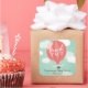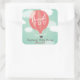 Passen Sie diese hübsche Girl Baby Shower Dankeschön Euch Stickers an, die eine originelle Illustration eines rosa gestreiften Heißluftballons zeigen, der hoch im blauen Himmel mit weißen Wolken fliegt. Matching Baby Shower Einladung finden Sie hier: