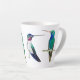 Gewohnte Latte Tasse für Kolibri-Liebhaber mit einem mexikanischen Violetear Hummingbird, einer Ruby-throated, einem Langschnabel-Starthroat und einem Broad-Billed Hummingbird. Personalisieren Sie mit Ihrem Namen. Der Stil des Schriftartes und die Größe des Schriftartes können durch Klicken auf "Bearbeiten mit dem Entwurfstool" geändert werden. Alle Vogelbilder werden von Christiane Dobbins aus originalen Aquarellen gemacht.