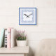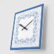 Eine hübsche Square Clock mit einem zarten Indigoblau-Blumenmuster auf weißem Hintergrund, das Sie nach Belieben ändern können. Teil der Posh und Painterly "Indigo" Kollektion.