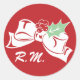 Individuelle Urlaubsticker mit Initialen. Dekorieren Sie Ihre Weihnachts- oder Weihnachtsbriefe und -briefe mit diesen Retro-Stickereien mit weißem Bogen mit heiligen Blättern und Beeren mit rotem Hintergrund.