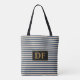 Custom Initial Blue/Vanilla Stripes Tote Beutel Tasche