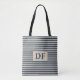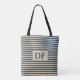 Custom Initial Blue/Vanilla Stripes Tote Beutel Tasche