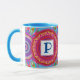 Individuelle erste psychedelische Regenbogenkaffee-Tasse. Individuelle erste Kaffee Tasse Mandala Muster. Boho chic mandala Muster. Es ist so einfach, die Initialen zu ändern. Entspannen Sie sich mit einem Cappuccino, entspannen Sie am Ristretto. Eine komplette Palette von Stilen und Farben mit austauschbaren Mustern und Initialen.