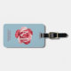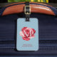 This personalized luggage tag features a bold rose design set against a refined blue background, customized with your initial or name on the front and full contact information on the back. The modern floral artwork adds a stylish touch while keeping your luggage easy to identify.
