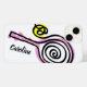 Custom iPhone 14 Gehäuse Design für Tennisspieler. Personalisierte Handy-Abdeckung mit künstlerischer Gestaltung von rosa Tennisschläger und gelben Tennisball. Fügen Sie Ihren eigenen Namen, Anführungszeichen oder Monogrammbriefe hinzu. Sportkunst zeichnend von Tennisschläger. Individuell gestaltbare Geburtstagsgeschenke für sportliche Männer und Kinder. Elegante Geschenkidee für Spieler, Fan und Coach. Stilvolle Pinselskripttypografie. Erstelle einen für Mama, Schwester, Tochter, Freund, Teamkollege, Doppel-Partner, Trainer, Lehrer, Oma, Cousin, Mädel etc. S8 S7 Zubehör für sie.