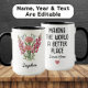 Honor the incredible woman born in January with this elegant custom mug featuring her birth month flowers—pink carnations and snowdrops. One side displays her name beneath a timeless floral illustration, while the other side reads: “Making the world a better place since [year].”