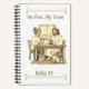 "Embrace a peaceful morning routine with this elegant 5.5 x 8.5 inch personalized luxury spiral notebook. Featuring a serene, minimal sepia-toned illustration of Jesus and a woman sharing a quiet coffee moment on a clean white background, accented with sophisticated earth-tone typography.