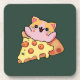 Custom Kawaii Cat Hugging Pepperoni Pizza Cartoon Getränkeuntersetzer