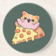 Custom Kawaii Cat Hugging Pepperoni Pizza Cartoon Getränkeuntersetzer