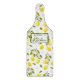 Dieses Zitrusfrüchte-Schneidebrett "Lemon" verfügt über Zweige mit Zitronen und ein individuelles Etikett. Perfekt für eine Küchendekoration.