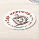 Promote your business with these customizable coasters that feature a charming illustration of a smiling coffee cup, bold typography that says, “Sip Happens,” plus a customizable text placeholder where you can add your shop name. Modify the design by adding your own logo (or use this logo as it is) and your business name to create custom promotional and branding products. Perfect for coffee shop, cafe, or coffee bar owners.