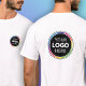 Give your team a polished, professional look with this custom branded business t-shirt. An ideal promotional tool for small businesses, this tee shirt features a logo placement area that is placed prominently on the back of the shirt, with a more subtle front placement on the left chest. Upload your company’s logo and select a shirt color that matches your brand identity. This modern template makes it quick and easy to create your own branded apparel for staff uniforms and event apparel. Click ‘Personalize’ to get started!