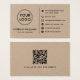 Modernes, berufliches Kraft-Papier-Visitenkartendesign mit Vorlagenfeldern für Name, Firmenname/Firmentitel, Logo (Foto oder andere Grafik) und Kontaktinformationen einschließlich Social-Media-Icons und Website-URL. Fügen Sie dem Hintergrund Ihren eigenen QR-Code hinzu. Ändern Sie die Farben, verschieben und verändern Sie Elemente mit dem Anpassungstool.