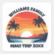 Diese coolen Aufkleber von Maui Hawaii enthalten Ihren personalisierten Gruppennamen für eine Wiedersehen oder einen Ausflug auf diese hawaiianische Insel. Niedliche Ferien bewahren Souvenir mit einer orangefarbenen Sonne über dem blauen Ozean Wasser Ihrer Kreuzfahrt oder Küstendestination.