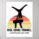 Dieses coole Herrengymnastikprint zeigt einen männlichen Gymnast in einem Handstand auf einem Pommelpferd vor einem schönen Sonnenuntergang. Das komische Zitat lautet RISE SHINE POMMEL. Passen Sie dieses Poster mit Ihrem Fitnessstudio oder Firmennamen an.