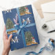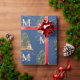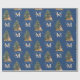 Custom Mercury Christmas Monogram Tiger & Tree Blu Geschenkpapier