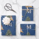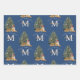 Custom Mercury Christmas Monogram Tiger & Tree Blu Geschenkpapier Set